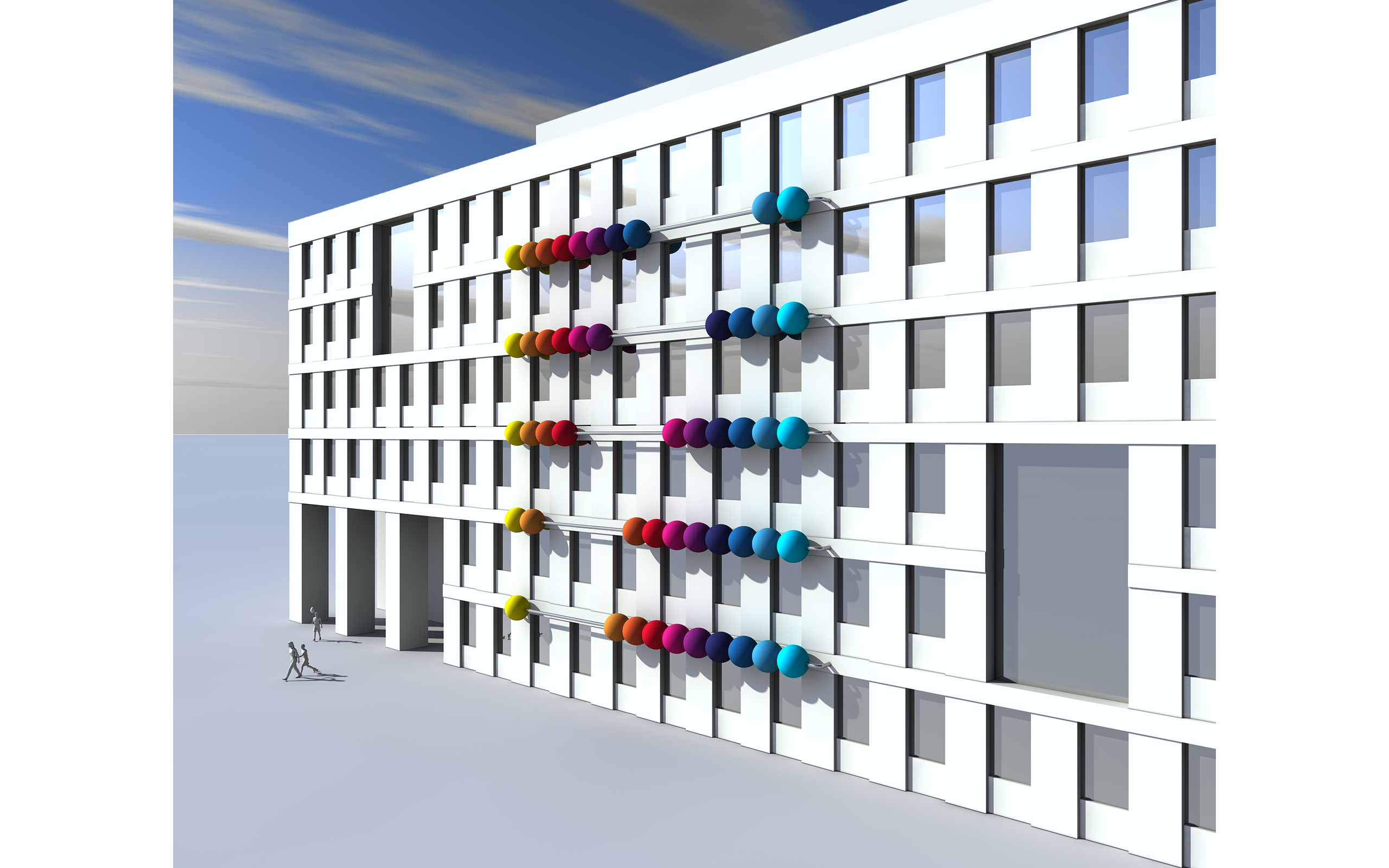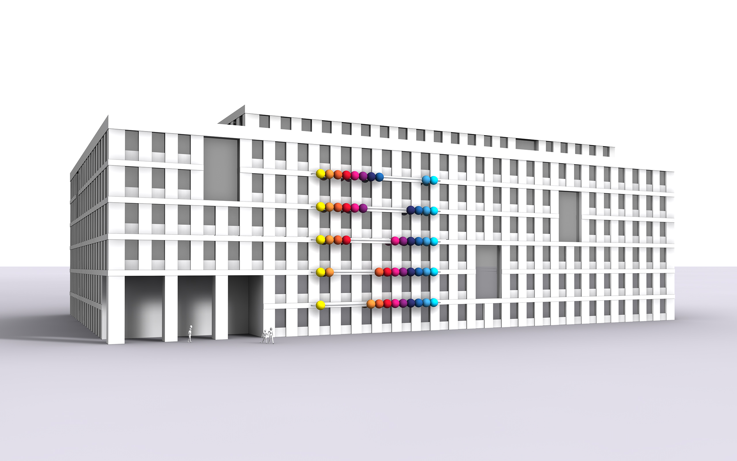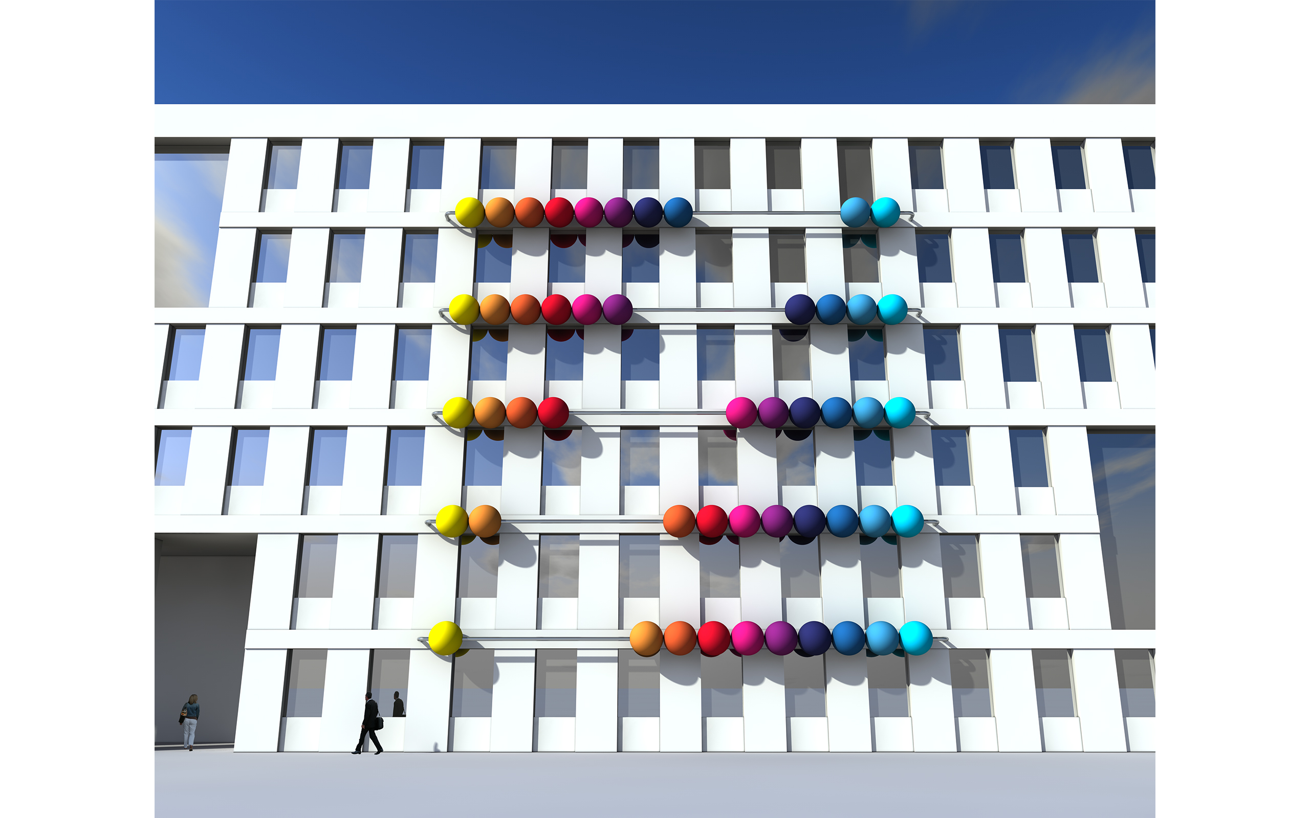 Abakus I Art in public for tax authority (Steuercampus) München I 15 m x 15,3 m x 1 m I Gfk lacquered, steel I 2016