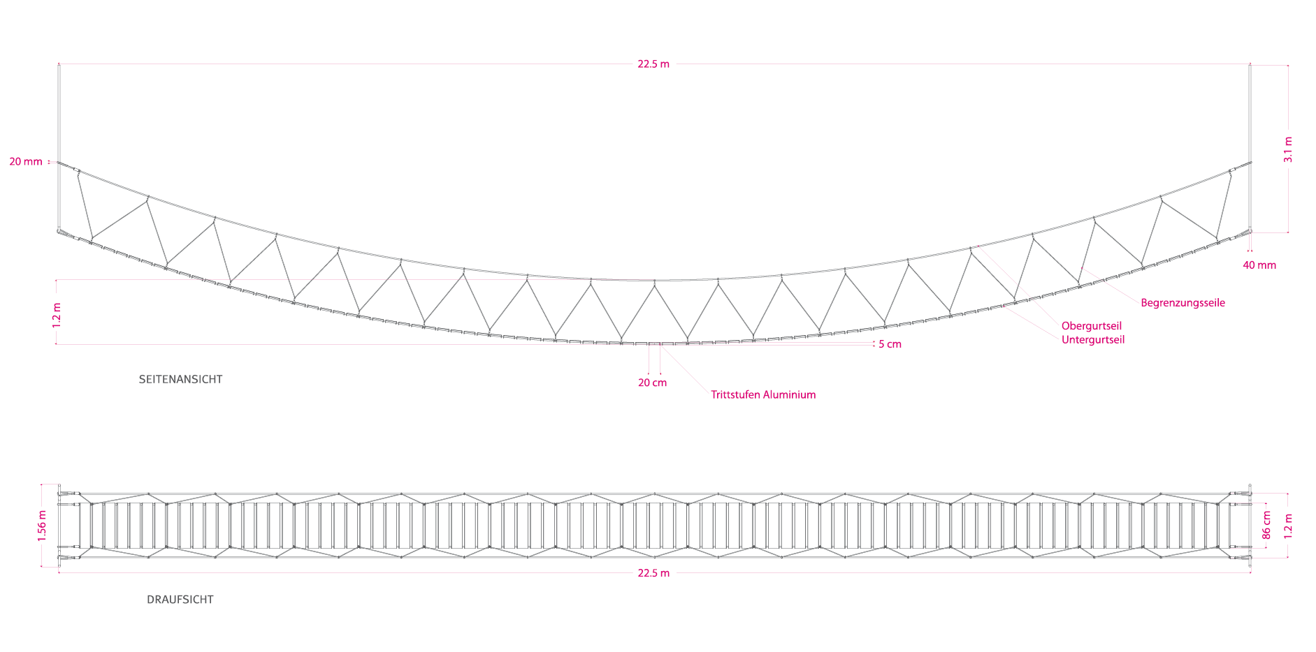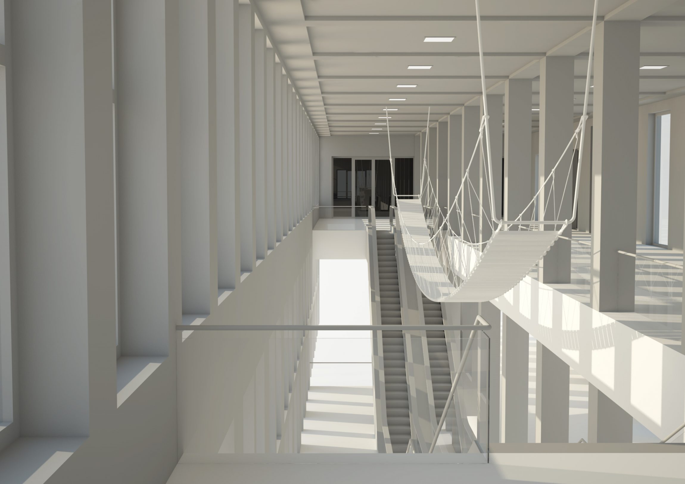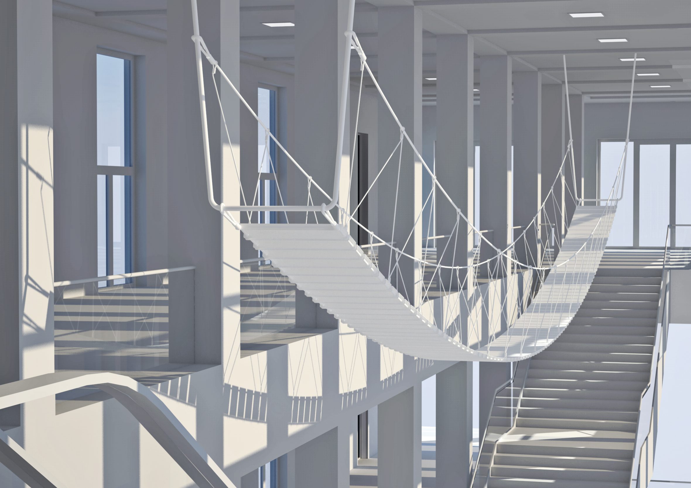 Brücke I Art in public for Humboldt Forum im Berliner Schloss, Berlin I 22,5 x 2 x 5,3 m I powdercoated Aluminium, steel ropes I 2017
