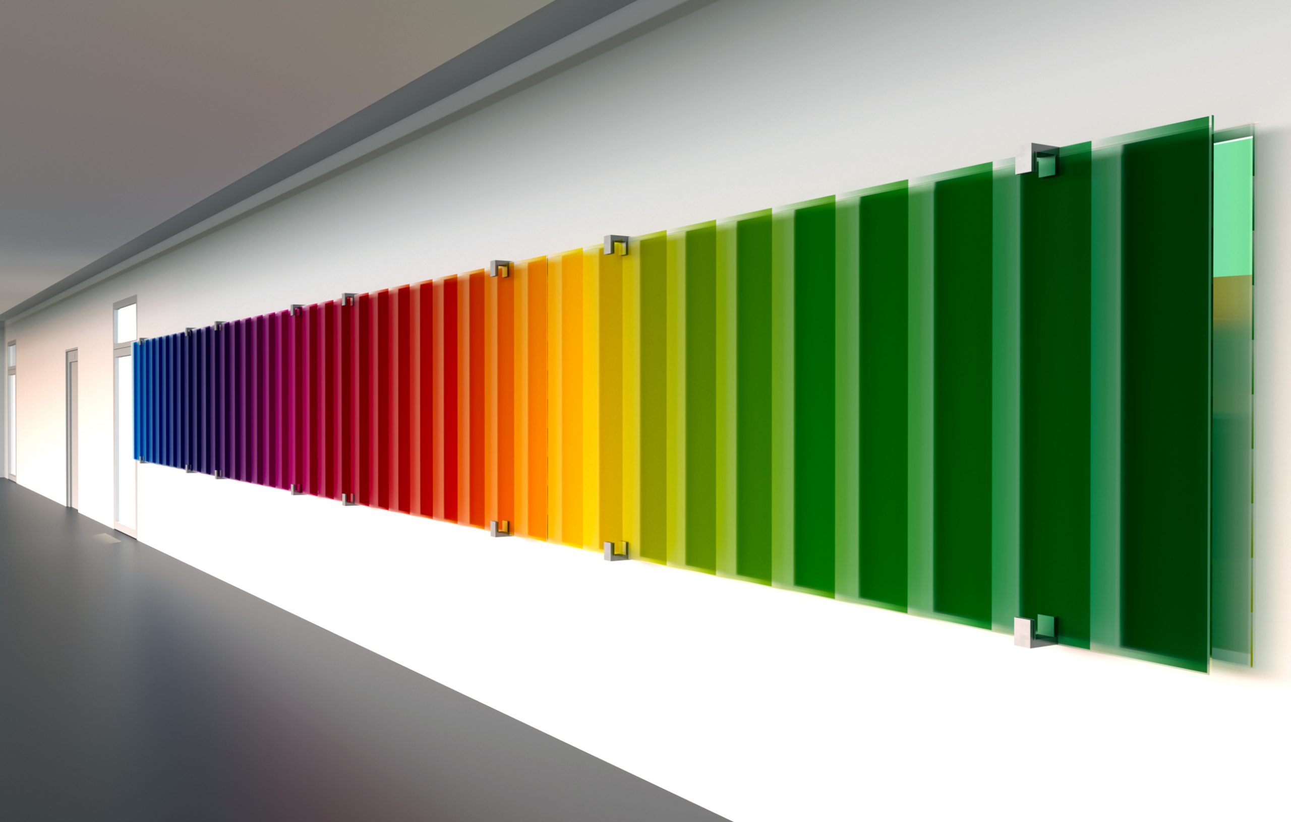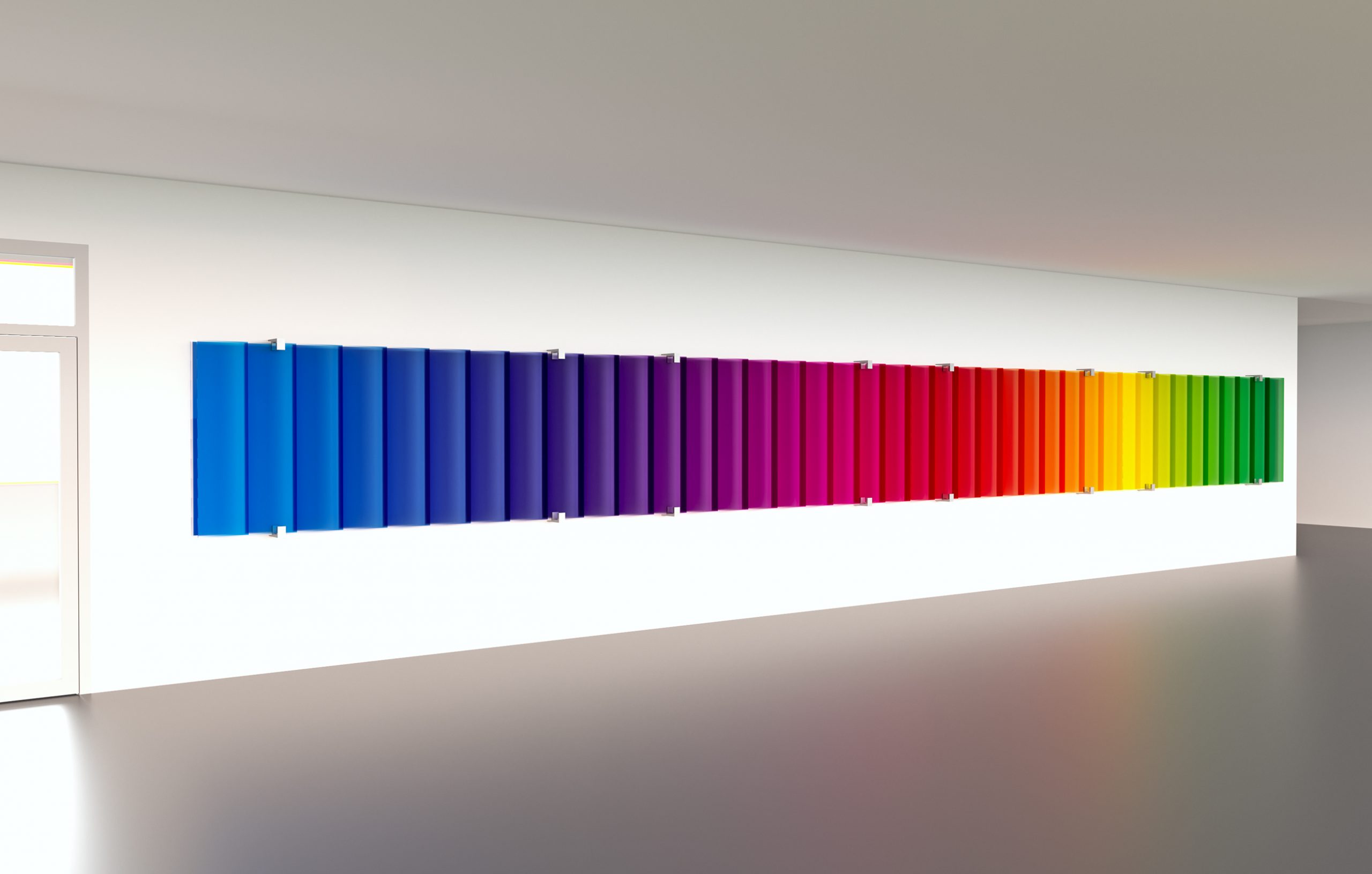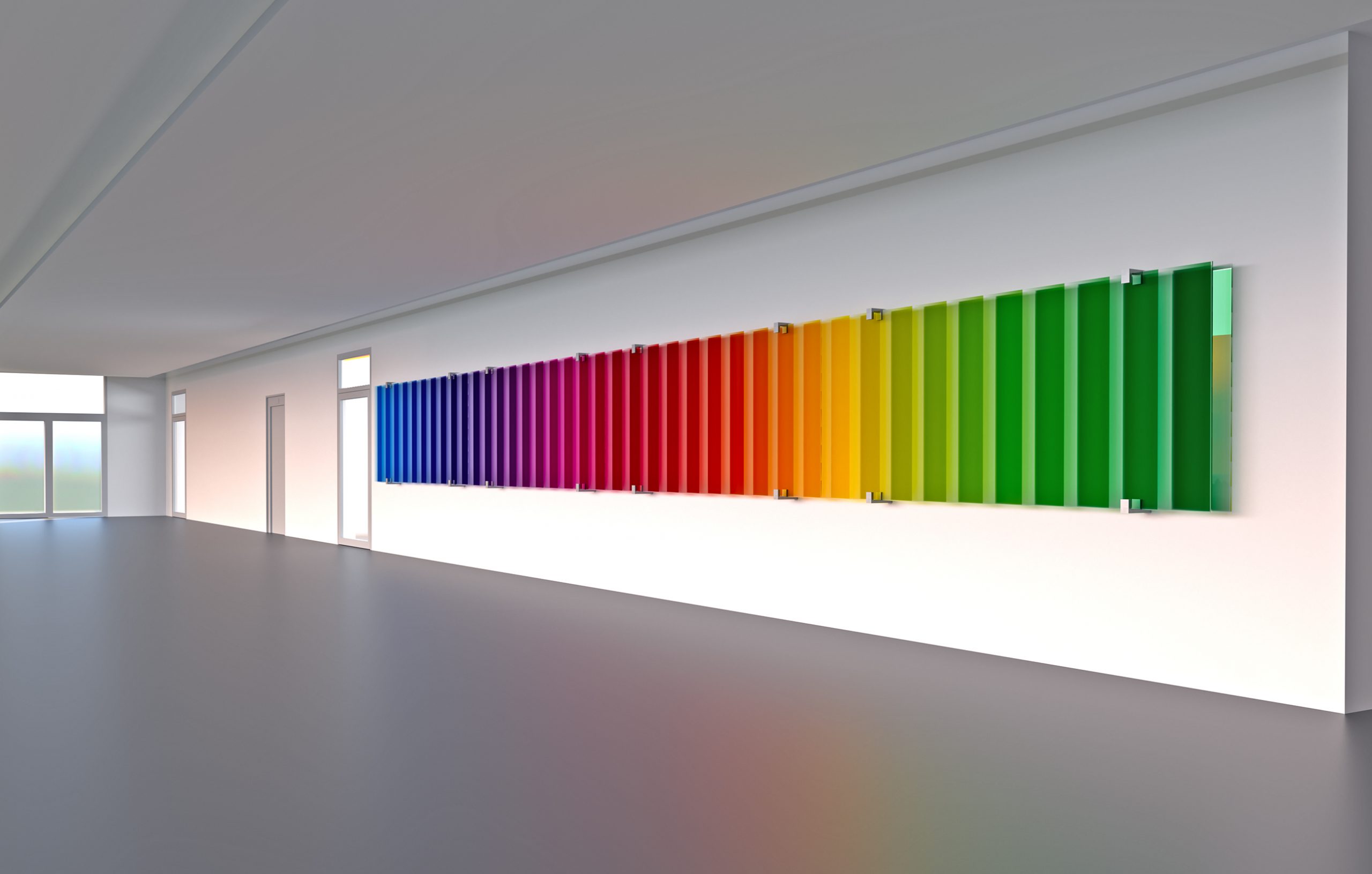 Horizontales Spektrum I Art in public for New Building Administration, East Bavarian Technical University, Location 2, Regensburg I 12 x 1,2 x 0,15 m I Scratch resistant Coloured Anti-reflective