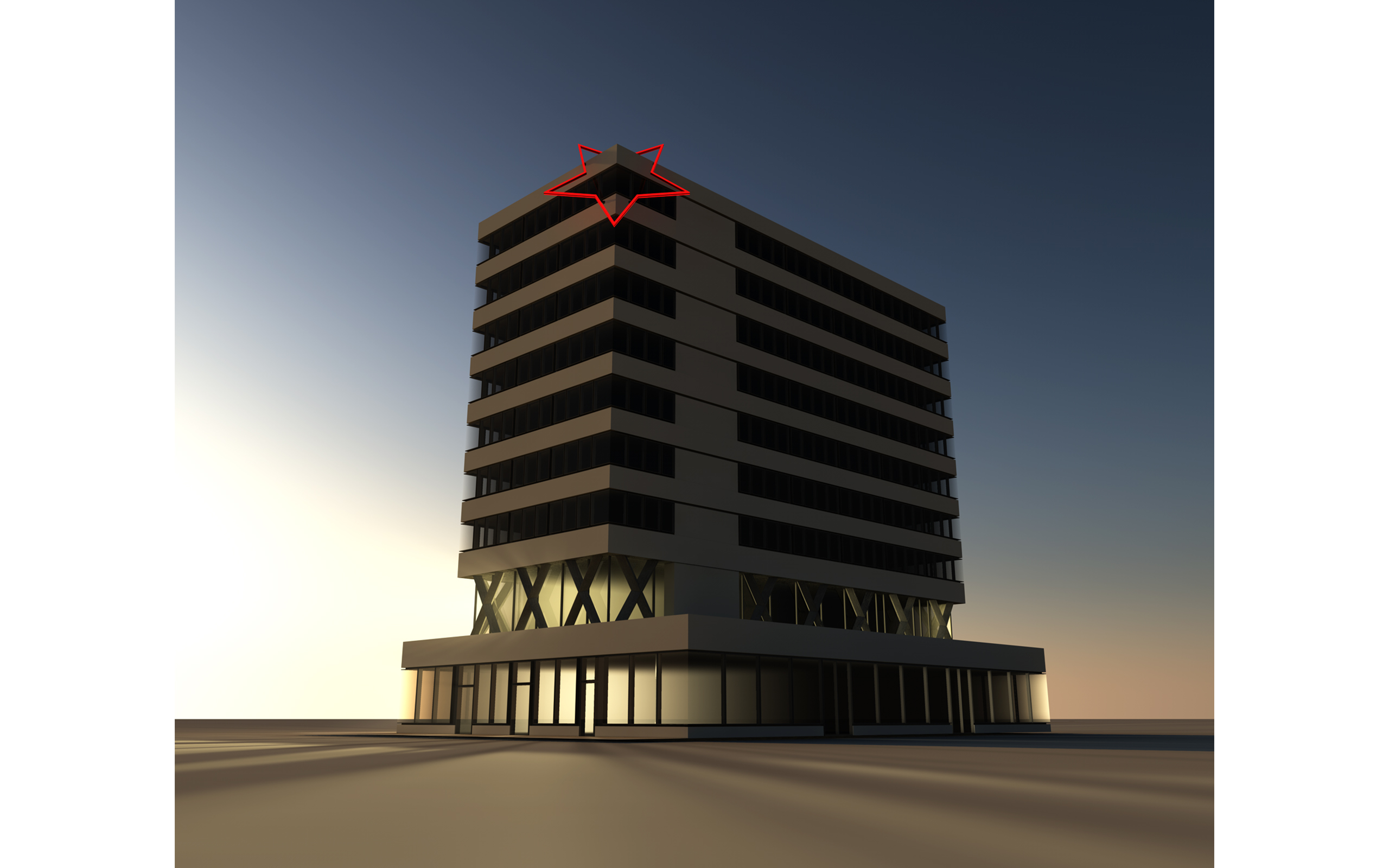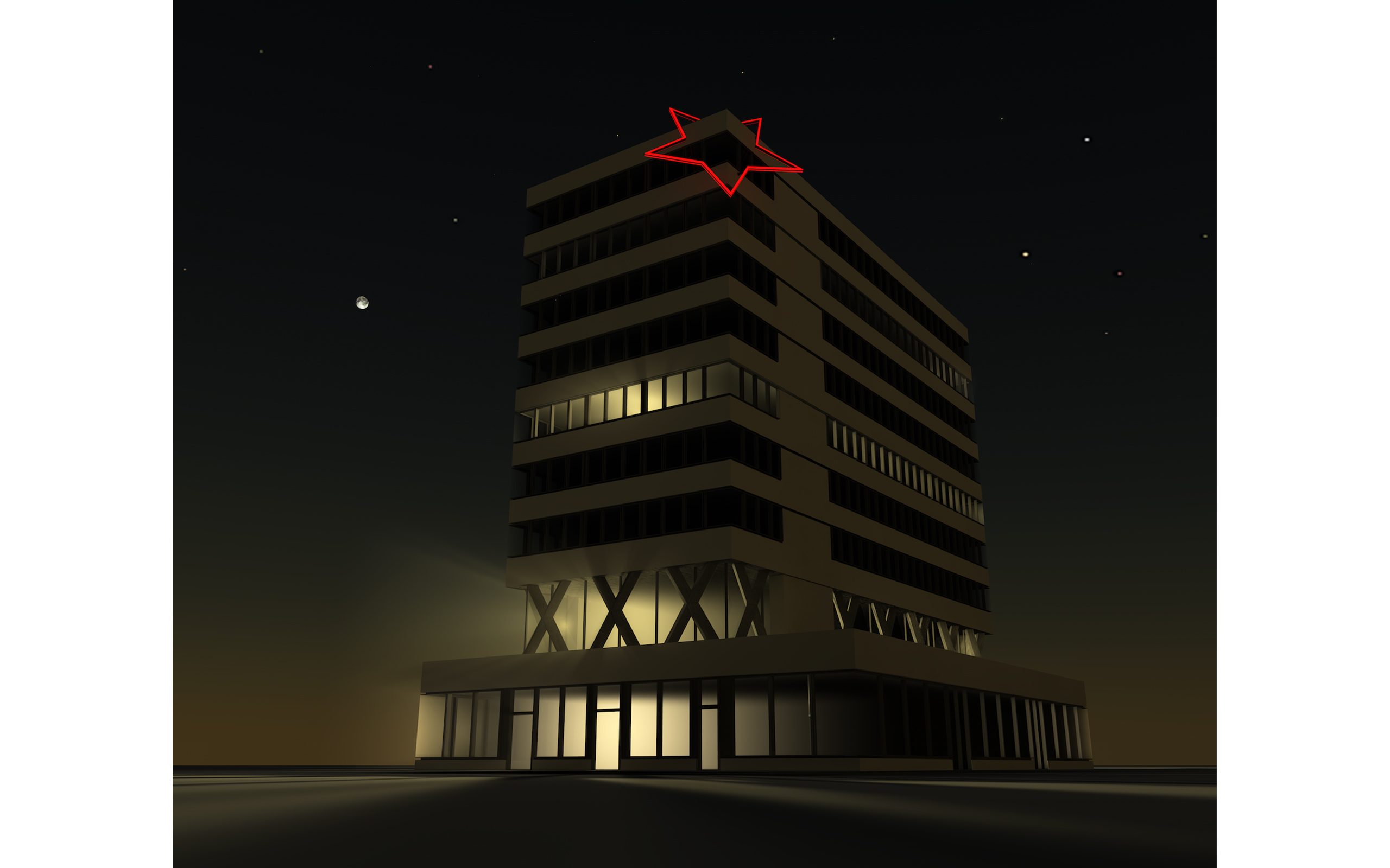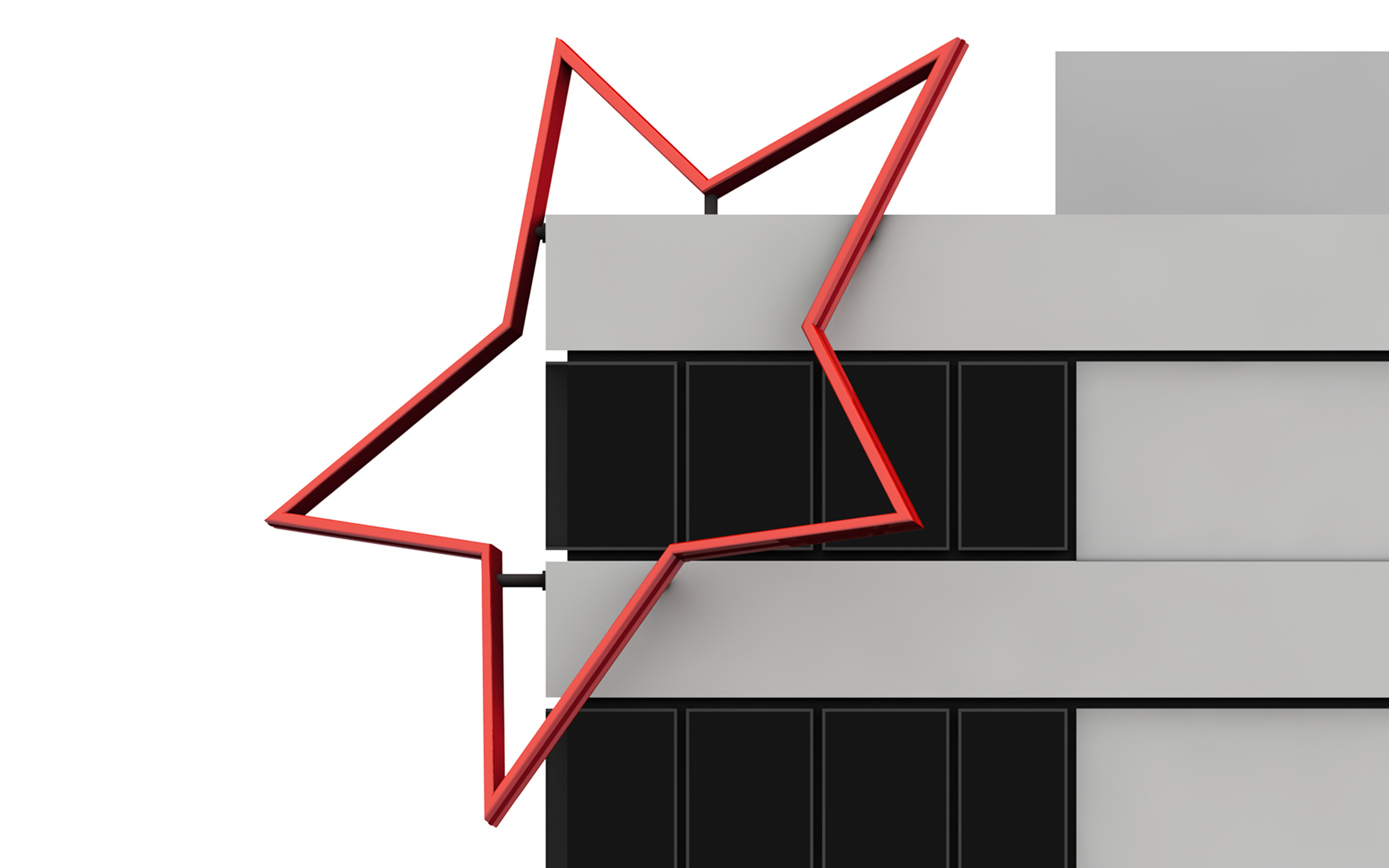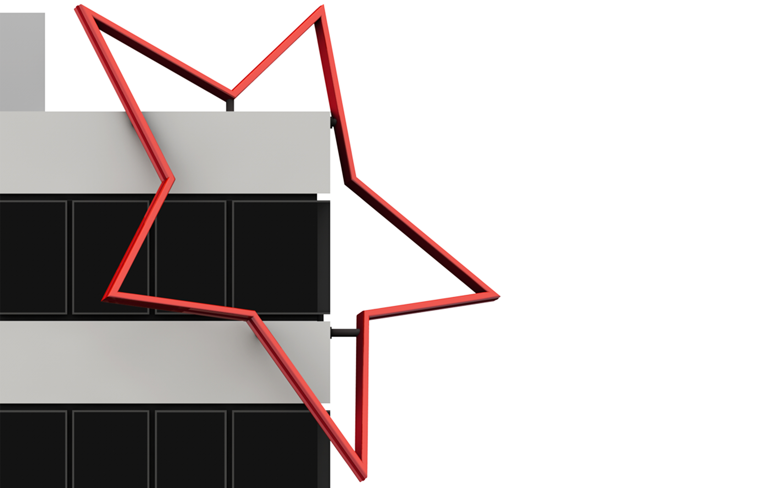 Roter Stern I Art in public for Neubau Rosa-Luxemburg-Stiftung, Berlin I 8 x 8,4 x 0,2 m I powdercoated steel, Acryl, LED-components I 2017 I