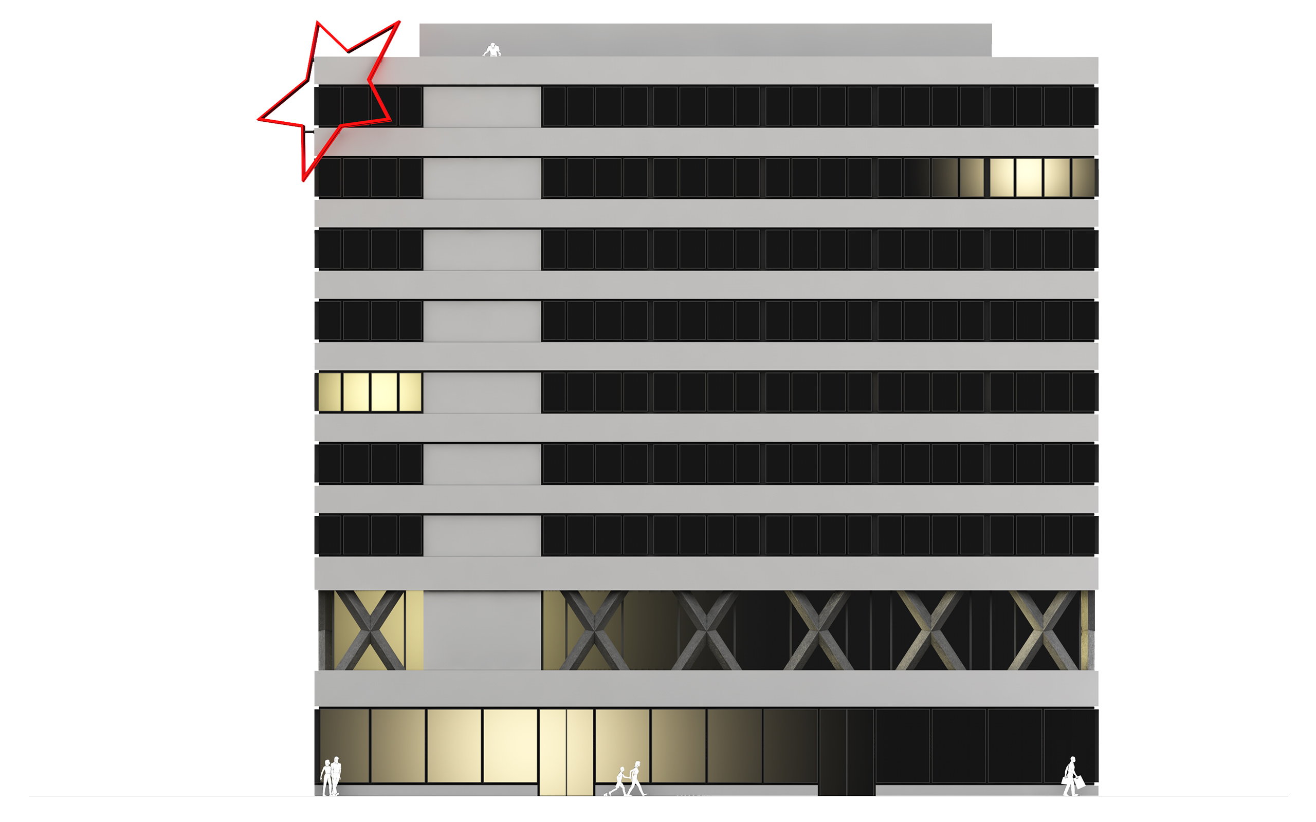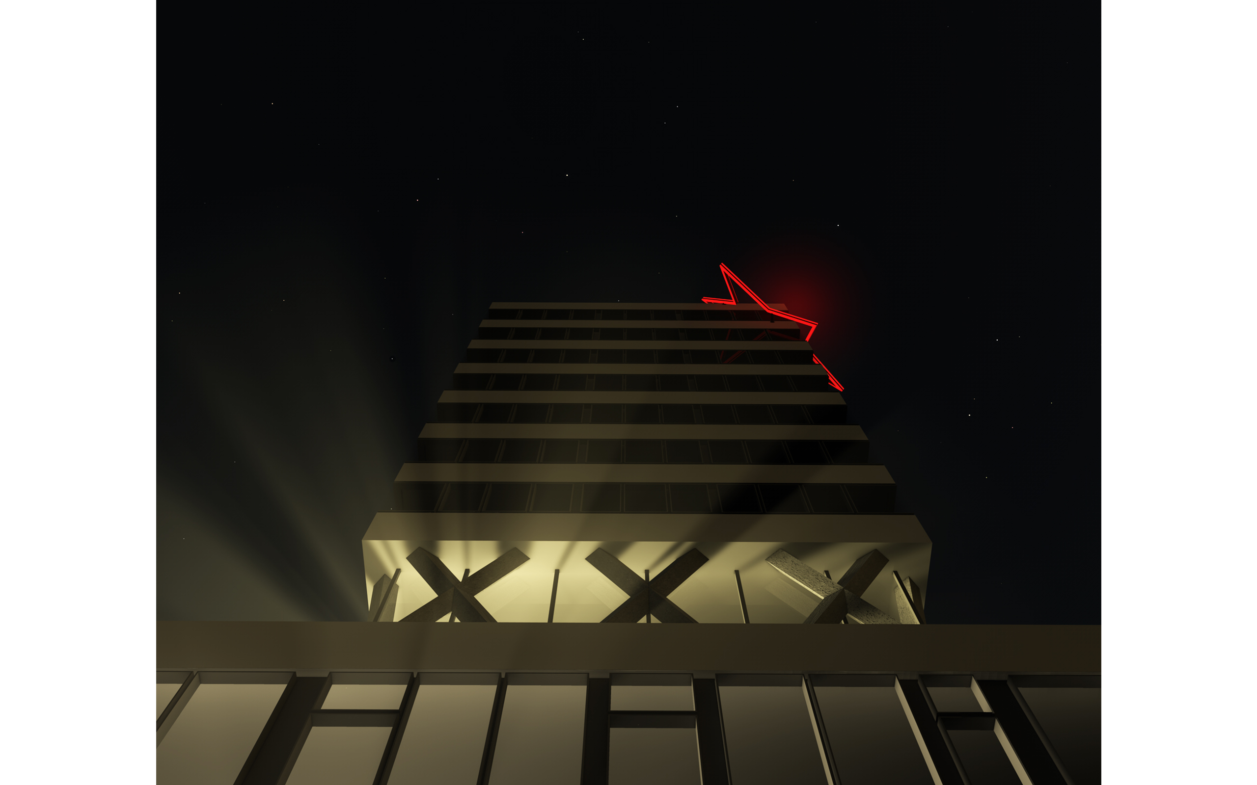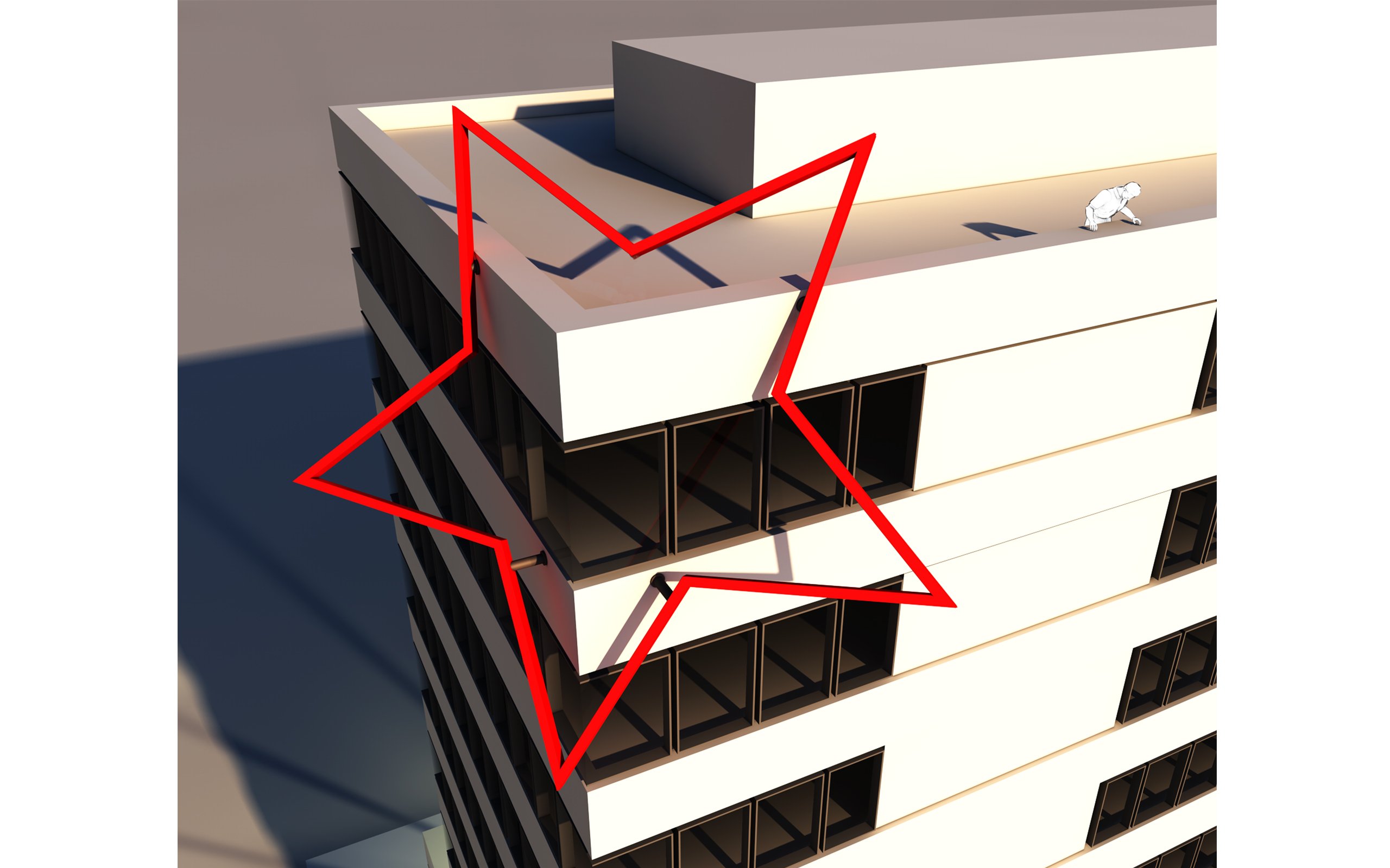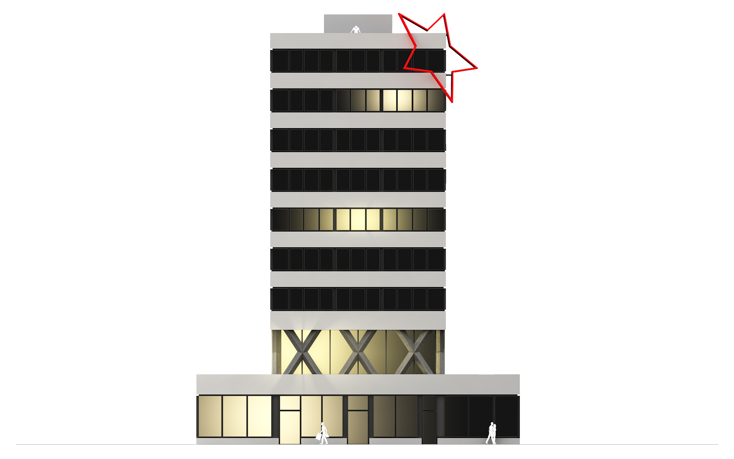 Roter Stern I Art in public for Neubau Rosa-Luxemburg-Stiftung, Berlin I 8 x 8,4 x 0,2 m I powdercoated steel, Acryl, LED-components I 2017 I